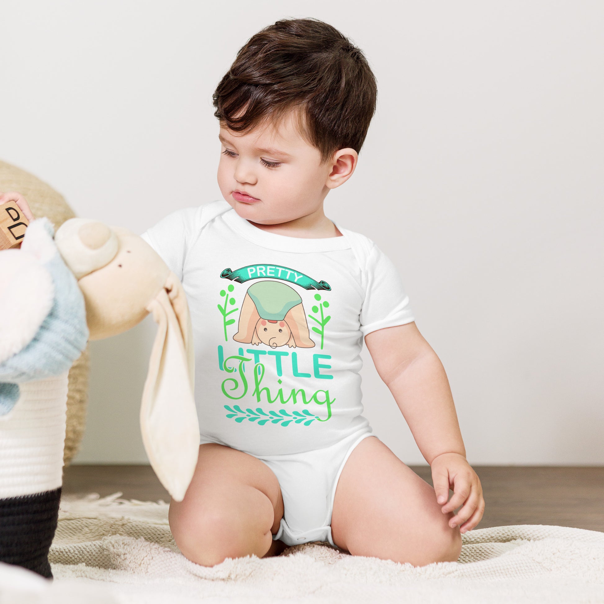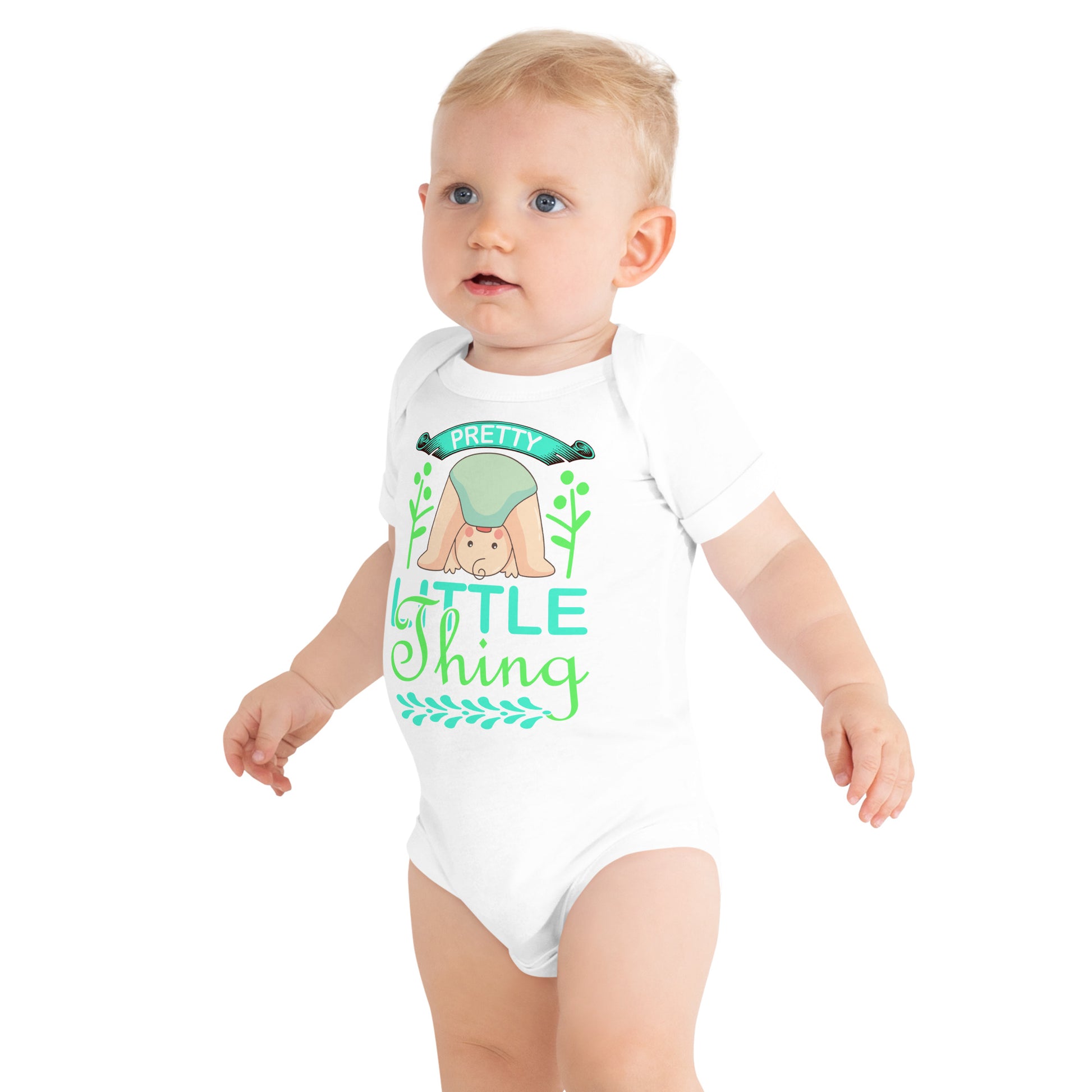 Облечете бебето си безупречно с това едно парче от 100% памук. Закопчава се с три щраквания на крачола за лесно преобличане, удобно деколте с плик и красива щампа, която със сигурност ще накара бебето да се разсмее и зарадва.