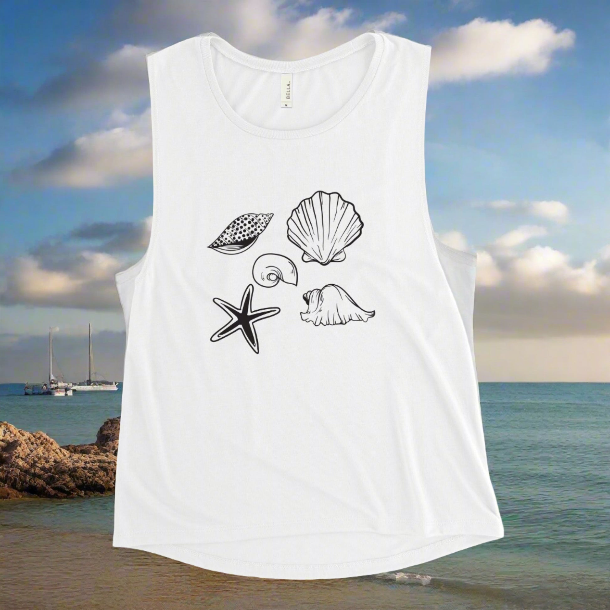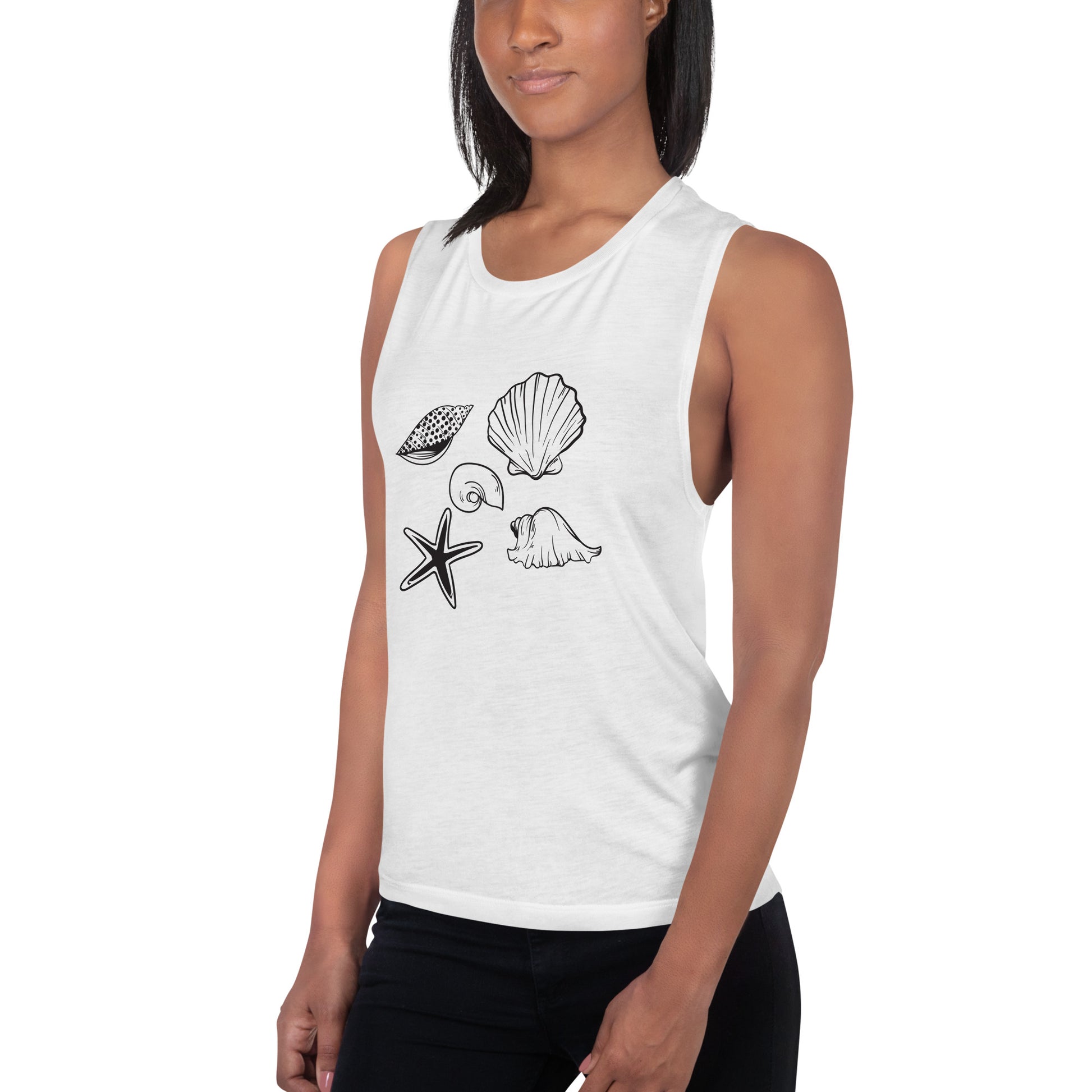 Този удобен потник за мускули е мек и течащ с ниски изрязани отвори за ръцете за спокоен вид.